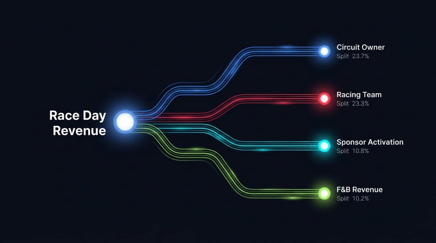 Revenue distribution between venue, team, and sponsor configured at sale time.
