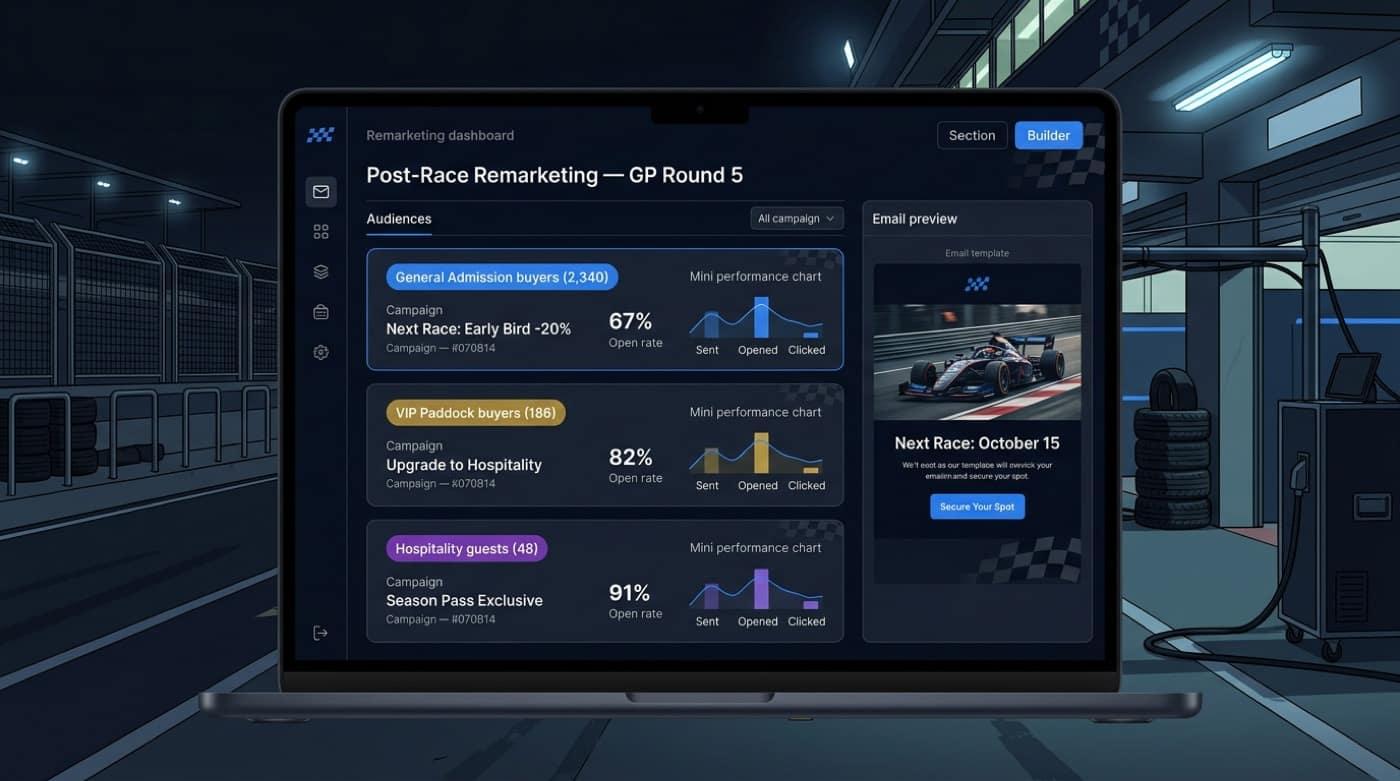 Unify circuit tickets, paddock experiences, and corporate hospitality in a white-label storefront built for presale spikes. Less mobile friction, more data for sponsors.