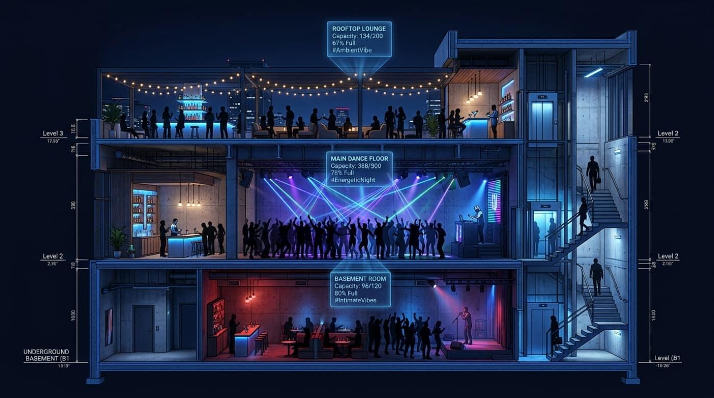 Hard caps for floor, VIP, and backstage. Sales stop when the ceiling hits.
