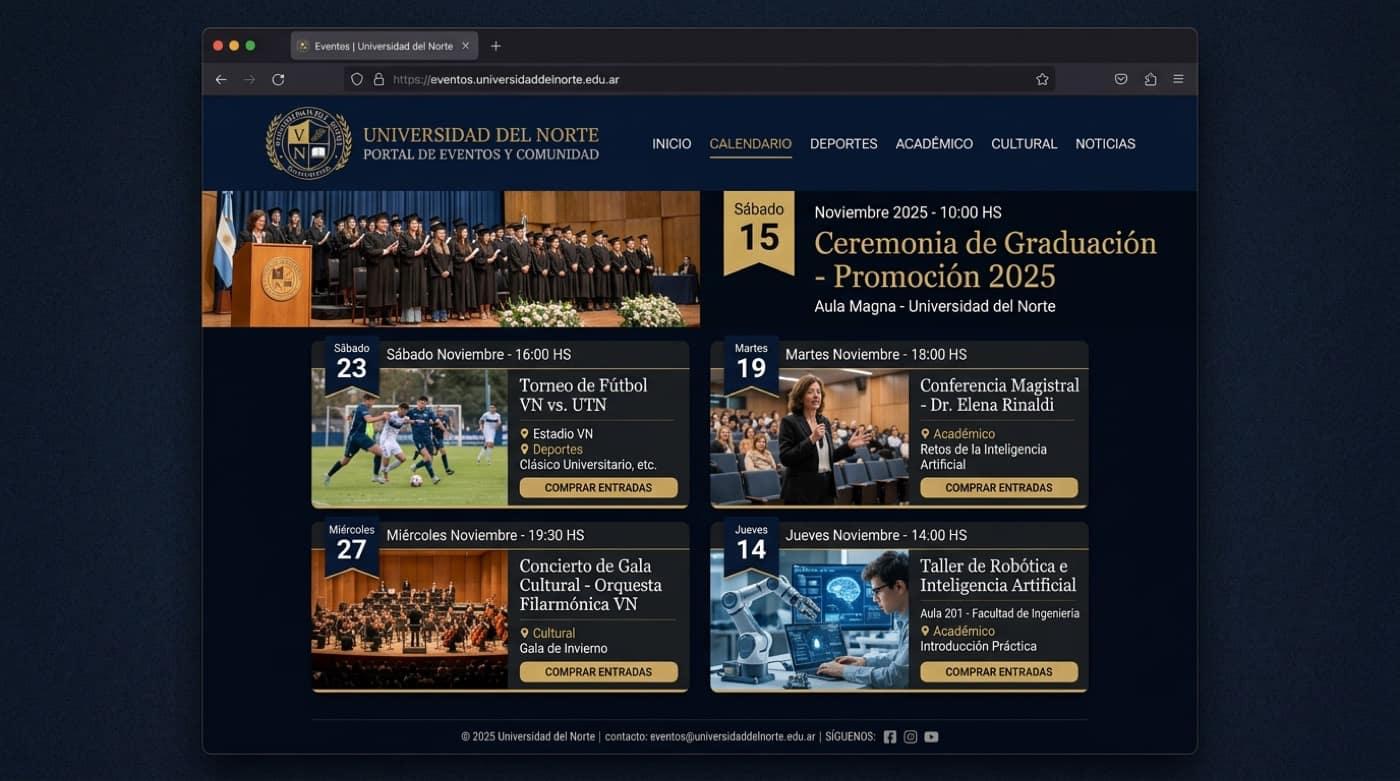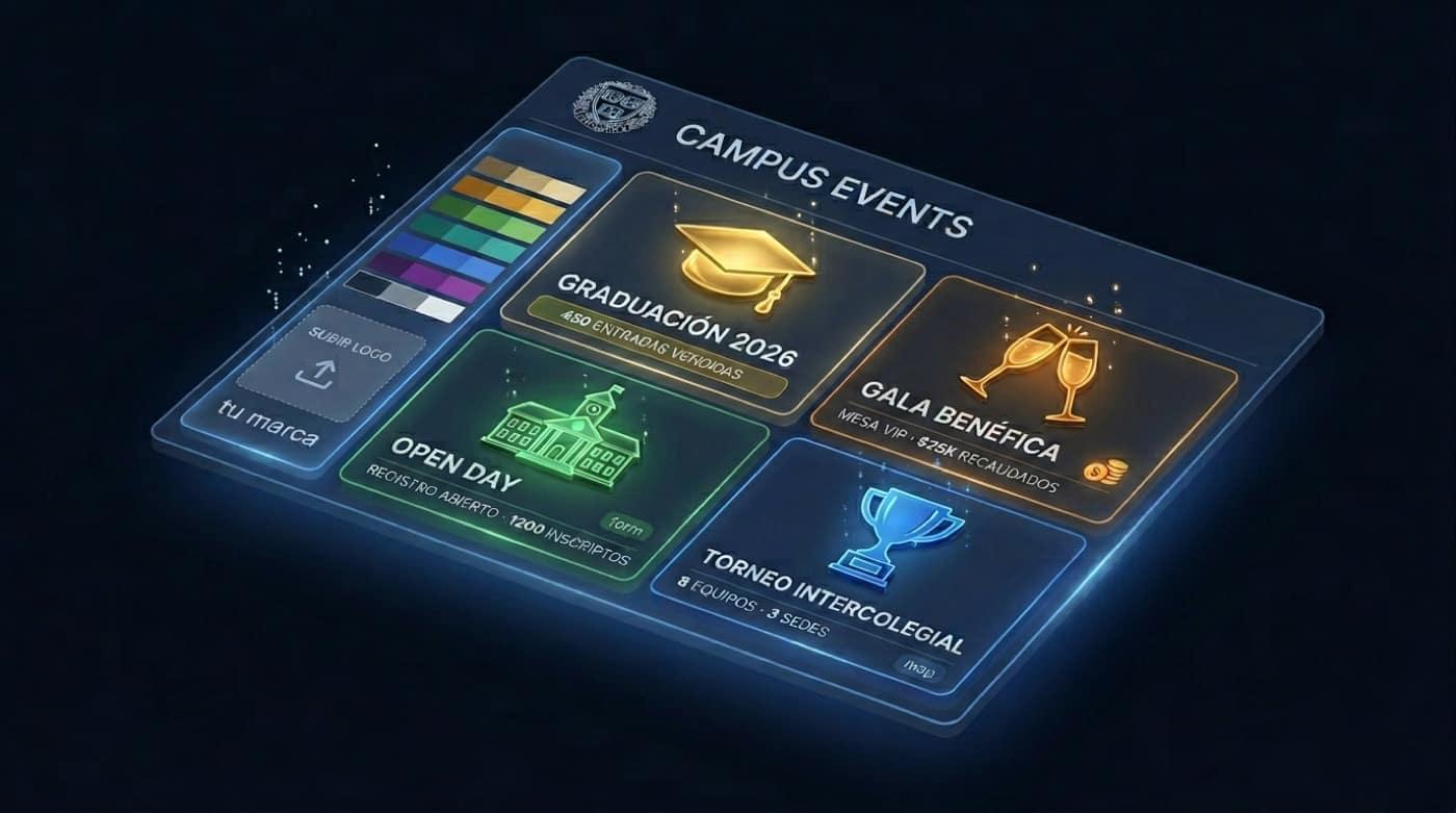 Graduations, galas, open days, and sports in one system with campus branding.