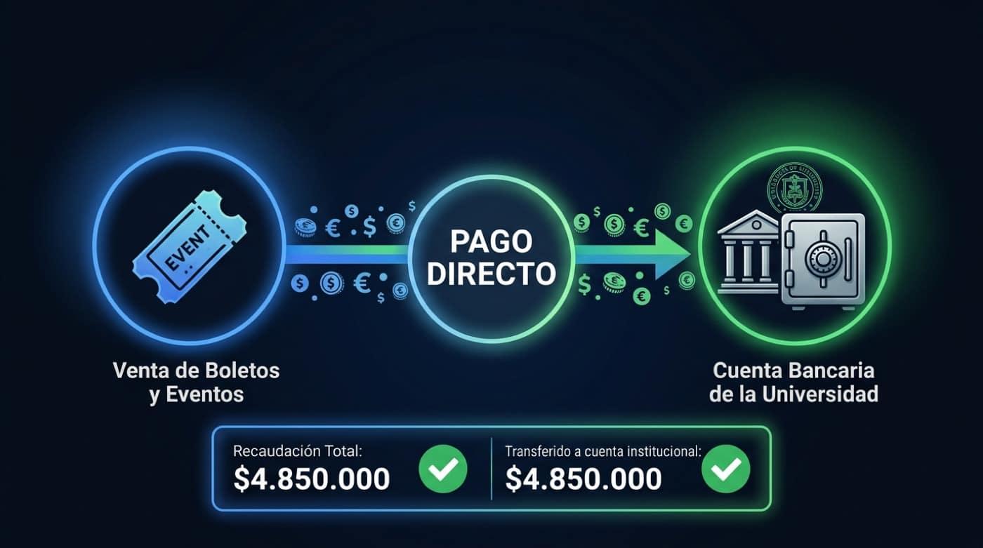 Revenue goes to the institution. No intermediaries holding funds.
