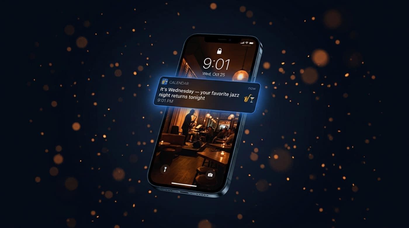 Avisos de últimos lugares, early bird para habituales y cross-sell entre noches temáticas.