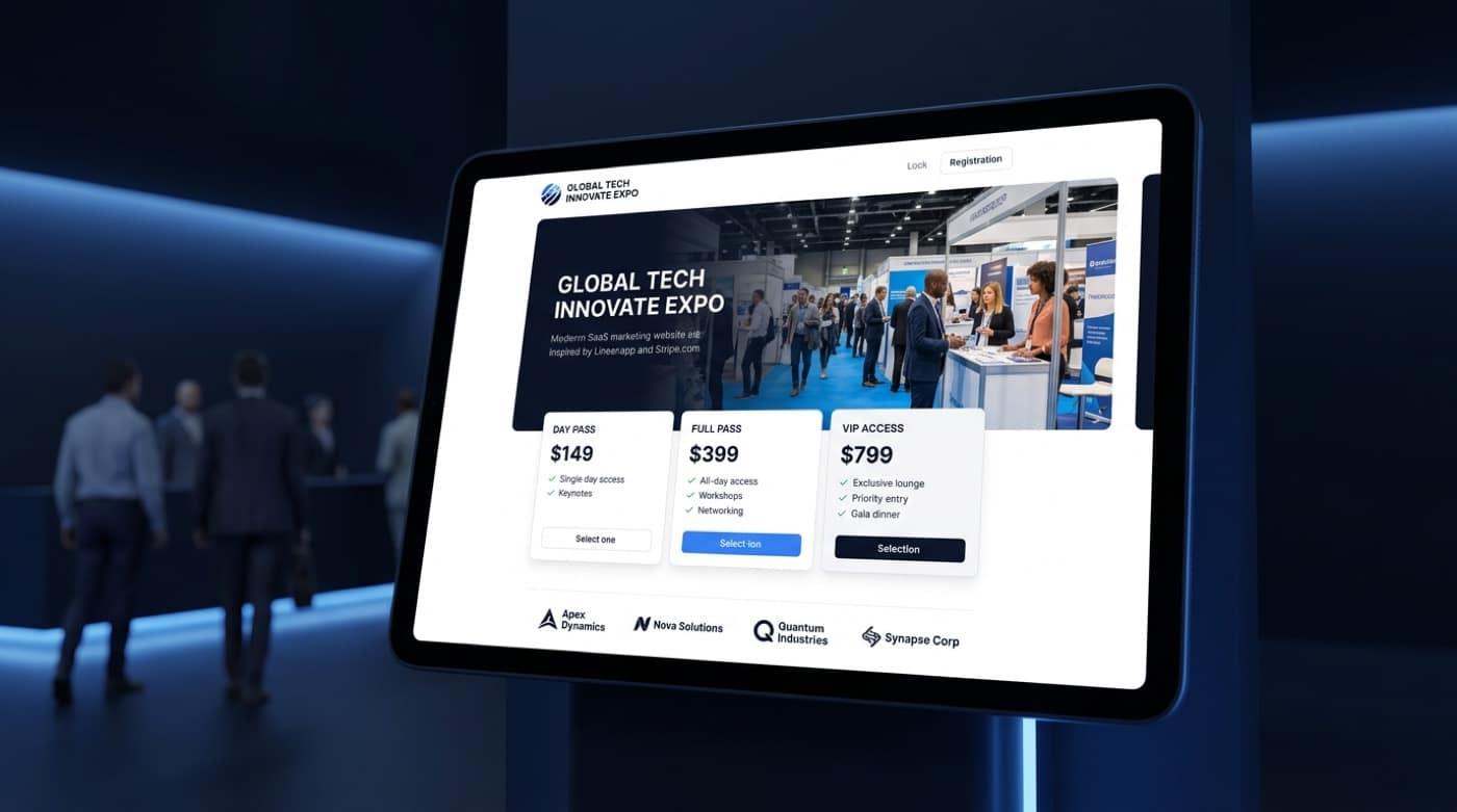 Pensado para jornadas multi-día, control fino de accesos y captura de leads que no termina en una góndola de tarjetas sin escanear.