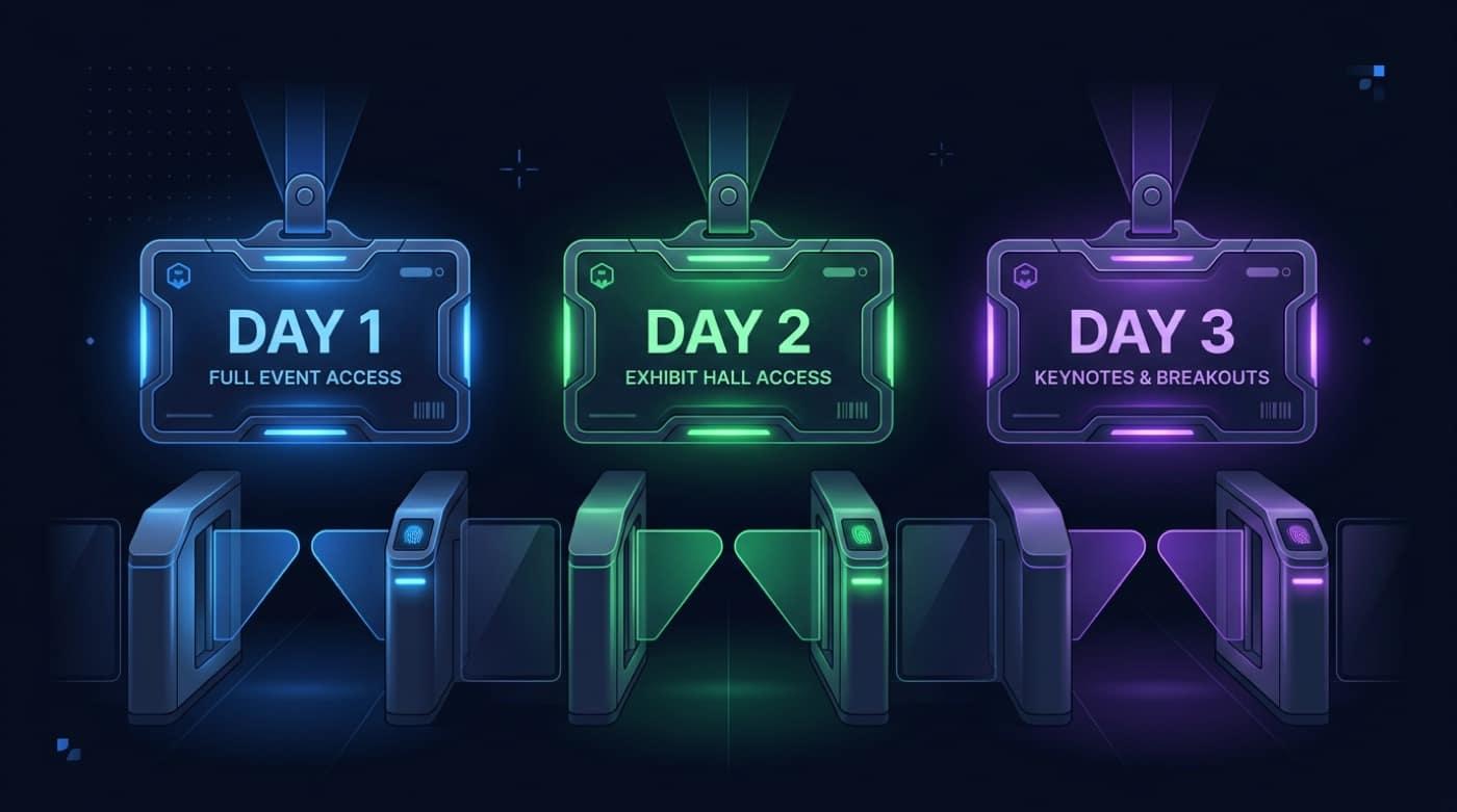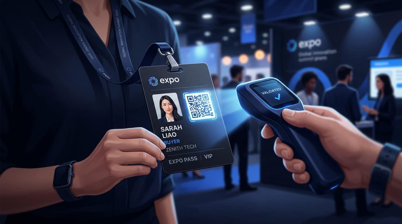 QR y validación en paralelo por acceso. Menos colas en badge pickup, más tiempo en pasillos.